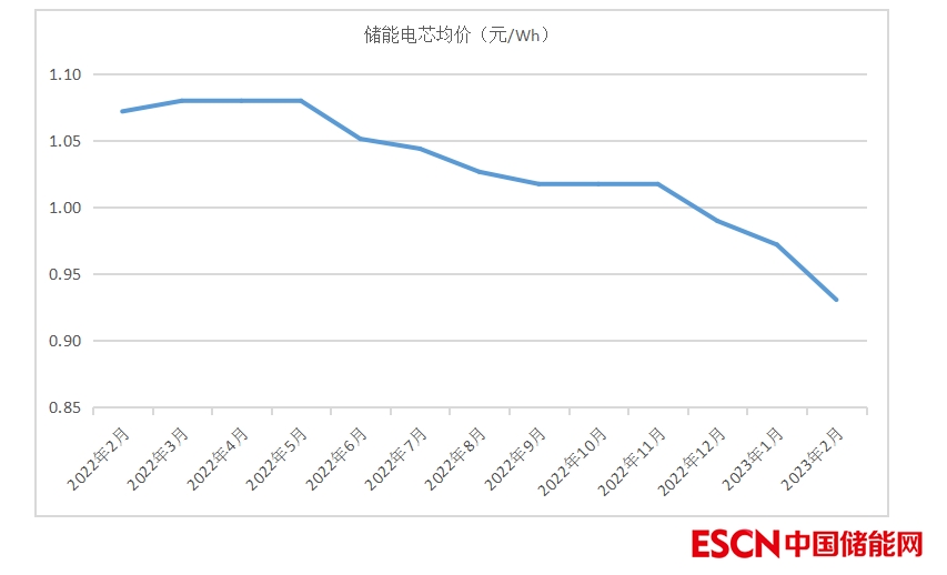 圖1 2022年2月-2023年2月儲能電芯價格走勢