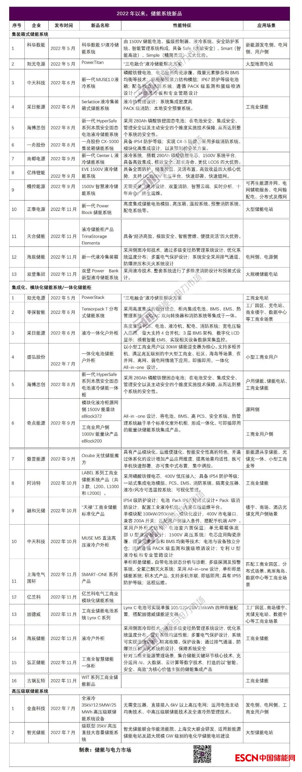 市場“狂飆”,各廠商也加速了產(chǎn)品更新迭代的進(jìn)程。根據(jù)儲能與電力市場對公開信息進(jìn)行的統(tǒng)計,去年以來,科華數(shù)能、陽光電源、億緯鋰能、采日能源、星云時代、海博思創(chuàng)、海辰儲能、中天科技、上海電氣國軒、天合儲能、阿詩特、盛弘股份等數(shù)十家廠商均推出新品,覆蓋電網(wǎng)級儲能、工商業(yè)儲能、戶用儲能等多元場景。