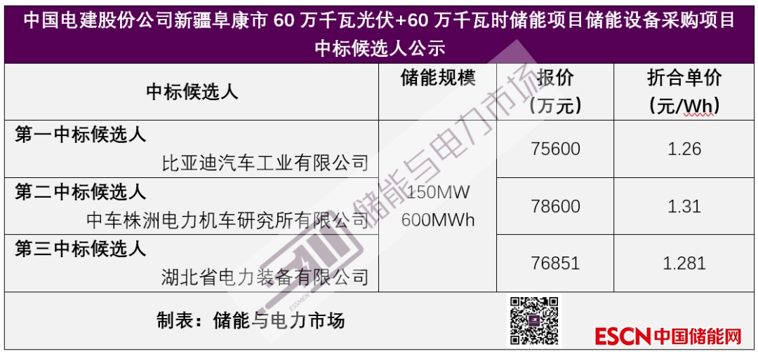 該項(xiàng)目?jī)?chǔ)能規(guī)模150MW/600MWh,比亞迪以總報(bào)價(jià)75600萬(wàn)元,折合單價(jià)1.26元/Wh,成為第一中標(biāo)候選人。