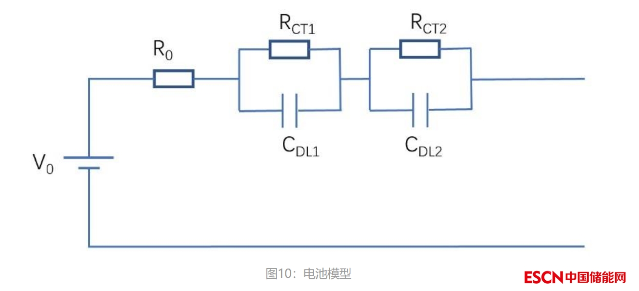 若給定電池一定規(guī)律的充放電電流的時(shí)候,電池對(duì)外表現(xiàn)出來的特性并不完全是電阻的線性特性。因此,根據(jù)電池所表現(xiàn)出來的階躍和沖激響應(yīng)可以得出電池的二階模型,如圖10所示。