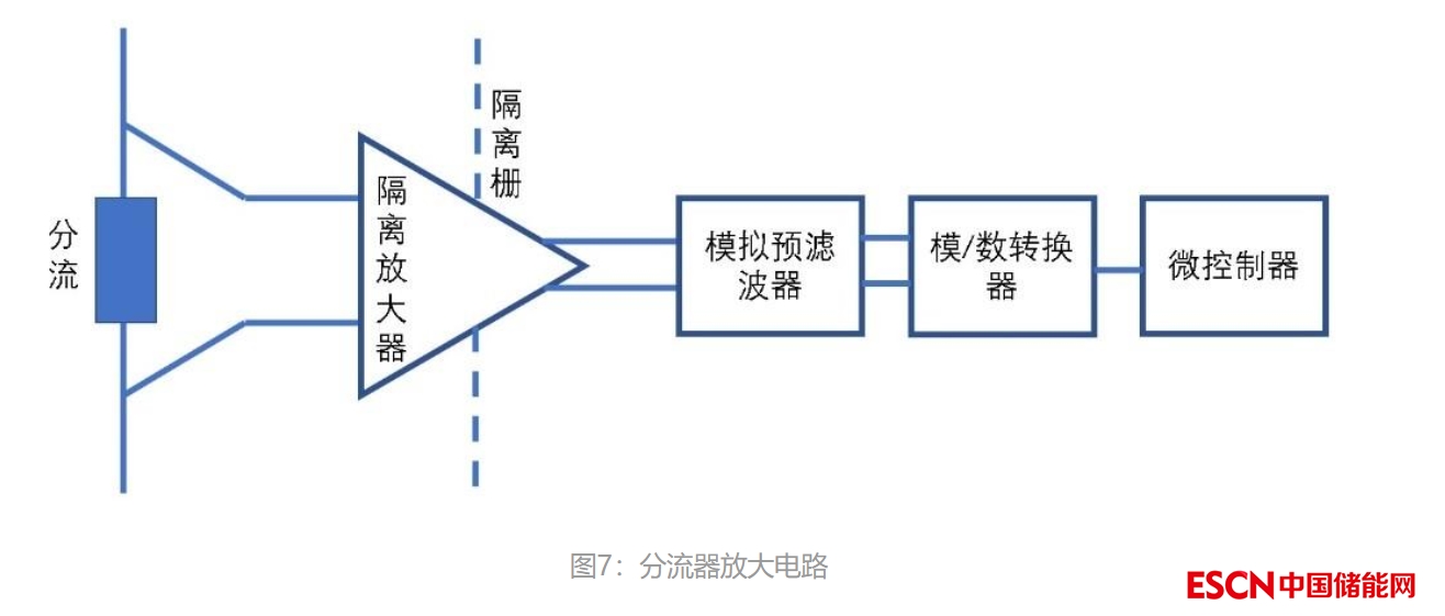 分流器價(jià)格便宜,種類繁多,并且不需要外部電源。通常,分流器的測(cè)量精度能夠達(dá)到0.1%-0.5%。此外,分流器放大器電路需要高共模抑制比、低直流偏移、高增益以及良好的熱穩(wěn)定性等(見圖7)。對(duì)于寬溫度范圍內(nèi)運(yùn)行的系統(tǒng),電池管理系統(tǒng)必須考慮分流器電阻隨溫度變化的情況。