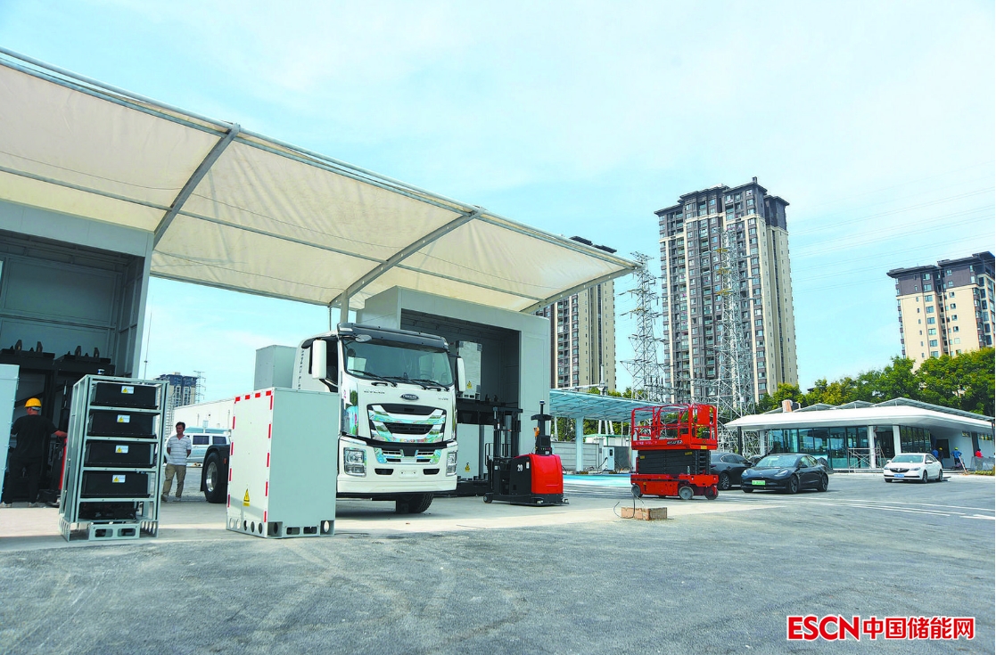 銅梁玉泉“光儲(chǔ)充檢換”一體站重型卡車換電區(qū)。顏玲莉 攝