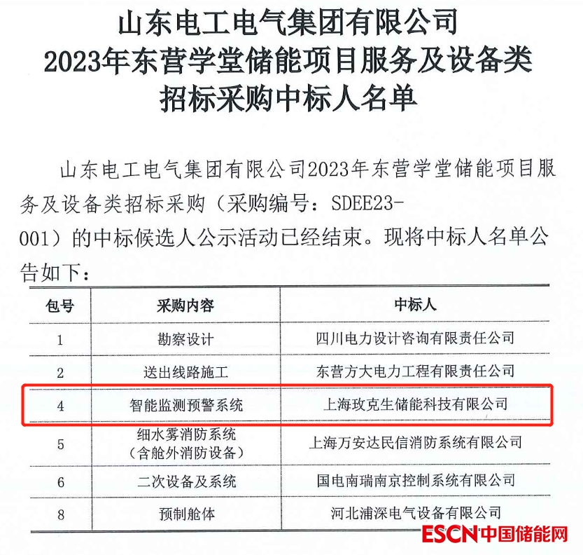 中國儲能網(wǎng)訊:新春起跑,實干開局!近日,山東電工電氣集團有限公司2023年東營學(xué)堂儲能項目服務(wù)及設(shè)備類招標采購中標人名單公示,美克生能源“智能監(jiān)測預(yù)警系統(tǒng)”成功中標,詳情如下: