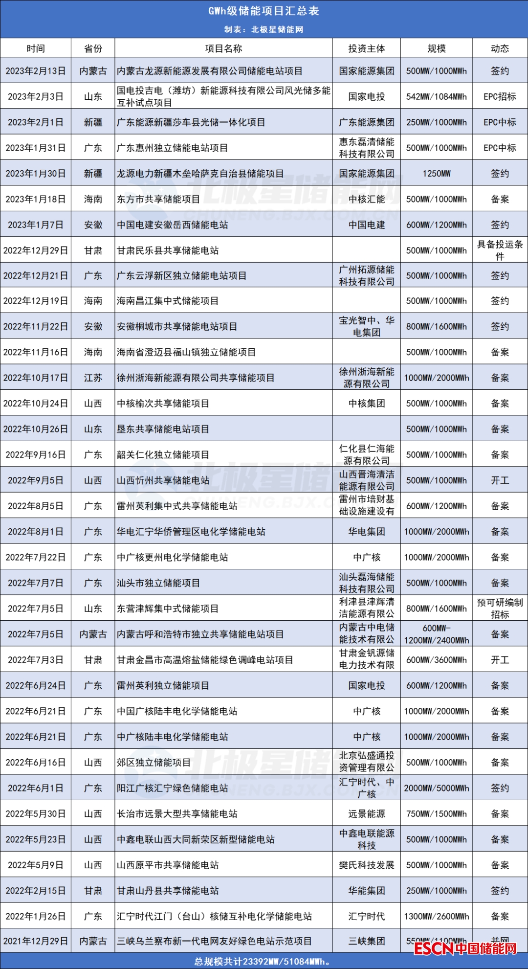 雖然吉瓦時(shí)項(xiàng)目的建設(shè)難度較大,但隨著各地儲(chǔ)能利好政策出臺(tái),吸引了不少央國(guó)企、地方有實(shí)力的儲(chǔ)能企業(yè)入局。