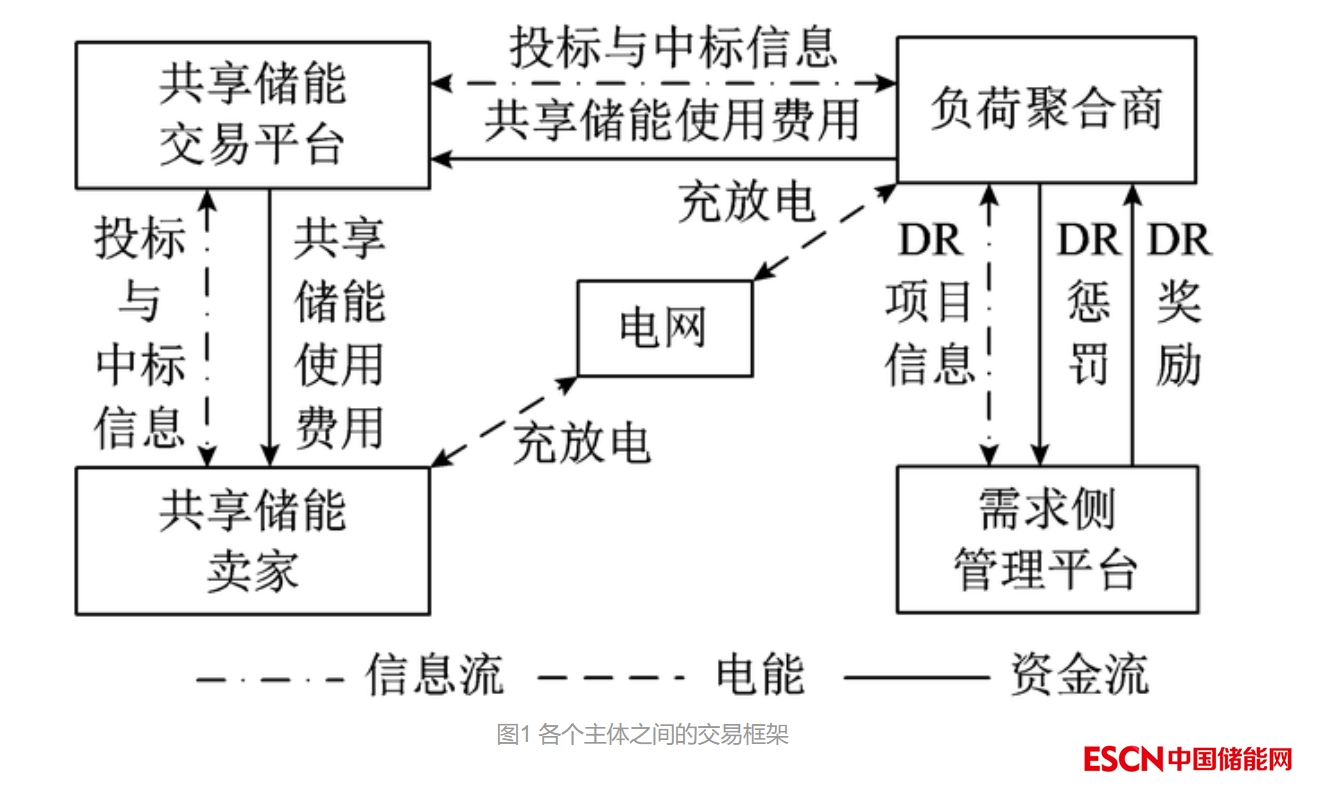 目前,用戶側(cè)共享儲能商業(yè)模式較為單一,共享儲能研究大多對共享儲能容量權(quán)或者功率權(quán)分別進(jìn)行拍賣。換而言之,共享儲能銷售方向購買方出售的是儲能容量使用權(quán)或是儲能充放電能力,對應(yīng)按容量或者按充/放電量計費(fèi)。在此單一模式下,由于儲能電池容量與儲能變流器功率具有耦合關(guān)系,易將造成資源浪費(fèi)。且當(dāng)前共享儲能商業(yè)模式下,共享儲能使用權(quán)常以1小時為最小出售時長,而負(fù)荷聚合商參與需求響應(yīng)通常以10分鐘或15分鐘為最小響應(yīng)單位,造成購買共享儲能使用權(quán)與參與需求響應(yīng)時間尺度不匹配。