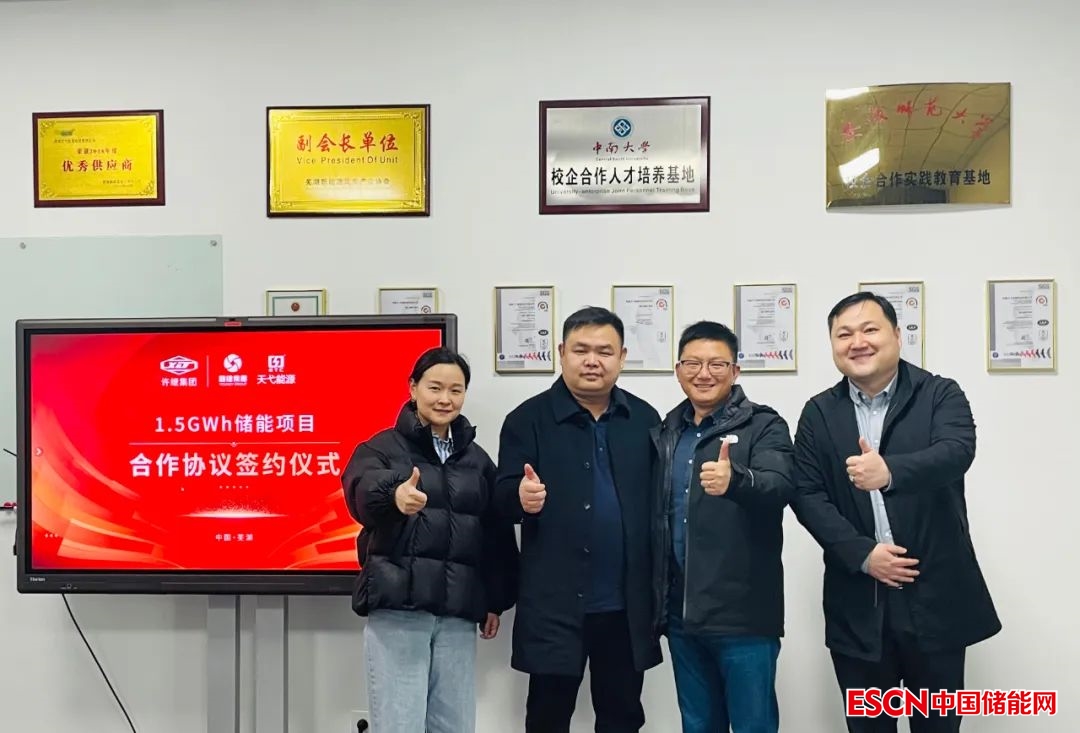 中國儲能網訊:2023年3月3日,融捷投資控股集團有限公司旗下的蕪湖天弋能源科技有限公司(以下簡稱“蕪湖天弋能源”)與許繼集團綜合能源服務分公司(以下簡稱“許繼集團綜合能源”)簽署1.5GWh儲能項目合作協(xié)議。蕪湖天弋能源副總經理吳總、銷售部總監(jiān)朱總,許繼集團綜合能源公司首席專家張總,江蘇德春電力科技股份有限公司董事長成董、董事長助理薛董助等人出席簽約儀式。