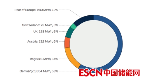 SolarPower Europe表示,由于目前電價(jià)較高,太陽(yáng)能和儲(chǔ)能有助于降低電費(fèi),因此自然每年家用電池儲(chǔ)能系統(tǒng)安裝量創(chuàng)新高。2021年,歐洲前五大家用電池市場(chǎng)——德國(guó)、意大利、奧地利、英國(guó)和瑞士——占?xì)W洲安裝電池的88%,其中德國(guó)以59%的份額領(lǐng)先。