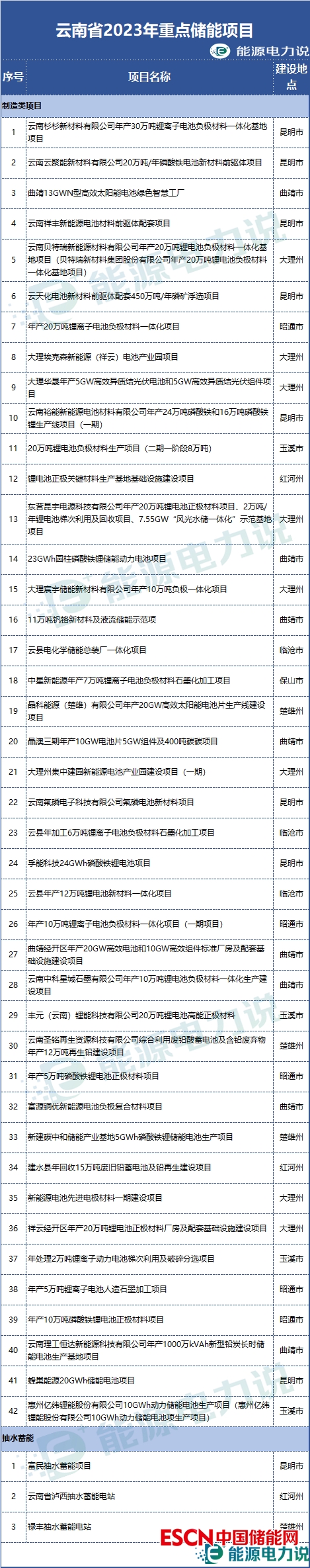 云南省發(fā)改委發(fā)布的《云南省2023年度省級(jí)重大項(xiàng)目清單》和《云南省2023年度“重中之重”項(xiàng)目清單》,云南省計(jì)劃在2023年實(shí)施45個(gè)儲(chǔ)能項(xiàng)目,主要涉及儲(chǔ)能產(chǎn)品制造類項(xiàng)目42個(gè)、抽水蓄能項(xiàng)目3個(gè)。