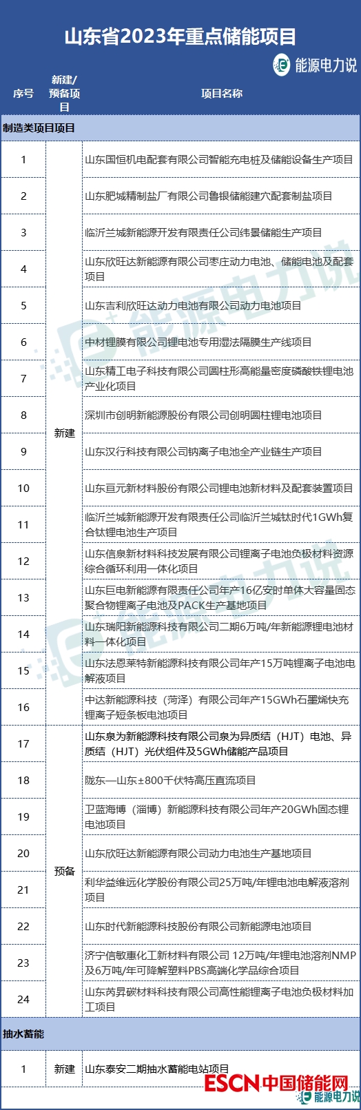 山東省人民政府發(fā)布2023年省重大項(xiàng)目名單,其中儲(chǔ)能項(xiàng)目有25個(gè)。