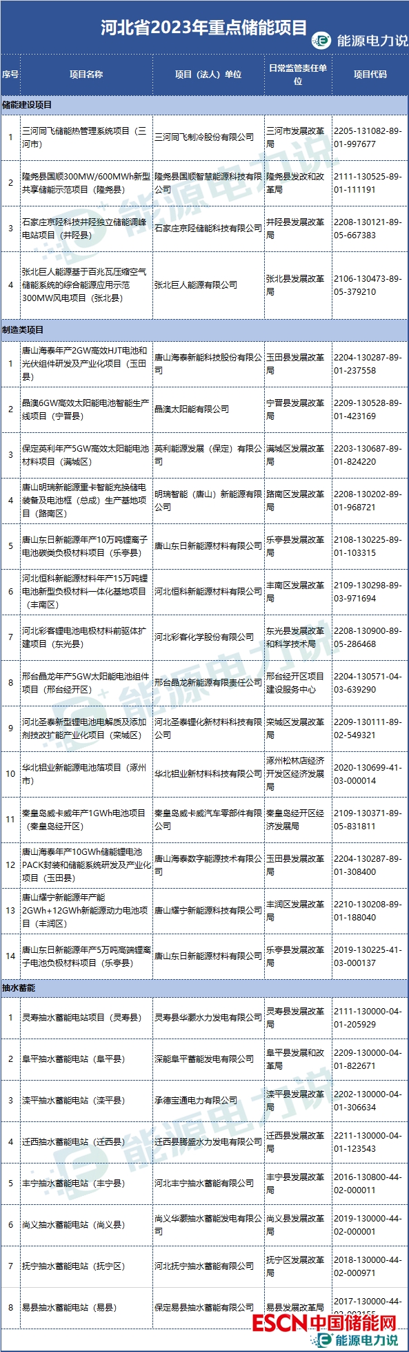 1月19日,河北發(fā)改委印發(fā)《河北省2023年省重點(diǎn)建設(shè)項(xiàng)目名單》,項(xiàng)目共計(jì)507項(xiàng),其中儲(chǔ)能項(xiàng)目有26個(gè),包含儲(chǔ)能建設(shè)項(xiàng)目4個(gè)、儲(chǔ)能產(chǎn)品制造類項(xiàng)目14個(gè)、抽水蓄能8個(gè)。