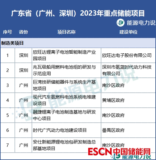 廣東省廣州、深圳兩個(gè)地市已發(fā)布2023年重點(diǎn)儲(chǔ)能項(xiàng)目。