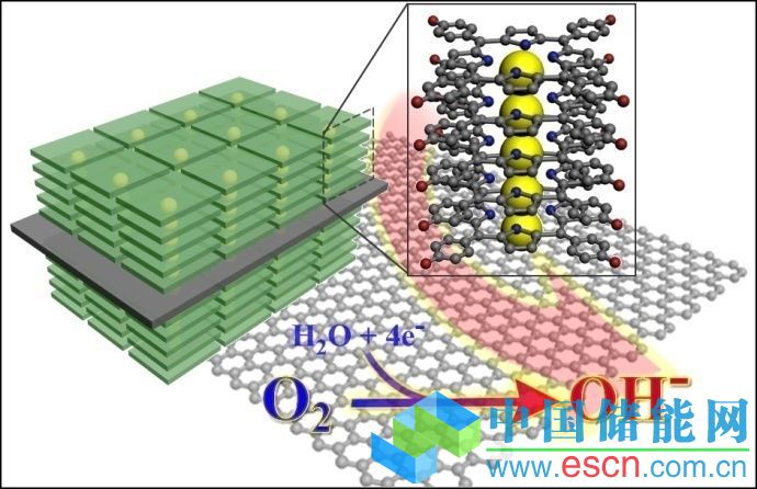 在國家自然科學(xué)基金和國家重點(diǎn)基礎(chǔ)研究發(fā)展計(jì)劃的支持下,中國科學(xué)院過程工程研究所王丹研究員的研究團(tuán)隊(duì)與國家納米科學(xué)中心唐智勇研究員的研究團(tuán)隊(duì)合作,從分子組裝的角度出發(fā),在石墨烯上,通過對金屬離子及卟啉分子的多次吸附,制備了鈷卟啉/石墨烯復(fù)合催化劑(如圖)。并進(jìn)一步通過對催化劑結(jié)構(gòu)、厚度及性能的可控合成,實(shí)現(xiàn)了催化活性的最大化。同時,由于石墨烯的大比表面積、高導(dǎo)電性及穩(wěn)定性,合成的催化劑穩(wěn)定性及抗甲醇中毒性能均得到了很大的改善。該成果為高活性高穩(wěn)定性復(fù)合非貴金屬氧還原催化劑的設(shè)計(jì)與開發(fā)開辟了新的路徑。相關(guān)研究結(jié)果發(fā)表在國際著名雜志《德國應(yīng)用化學(xué)》上(Angew. Chem. Int. Ed. 2013, 52, 5585-5589.)。