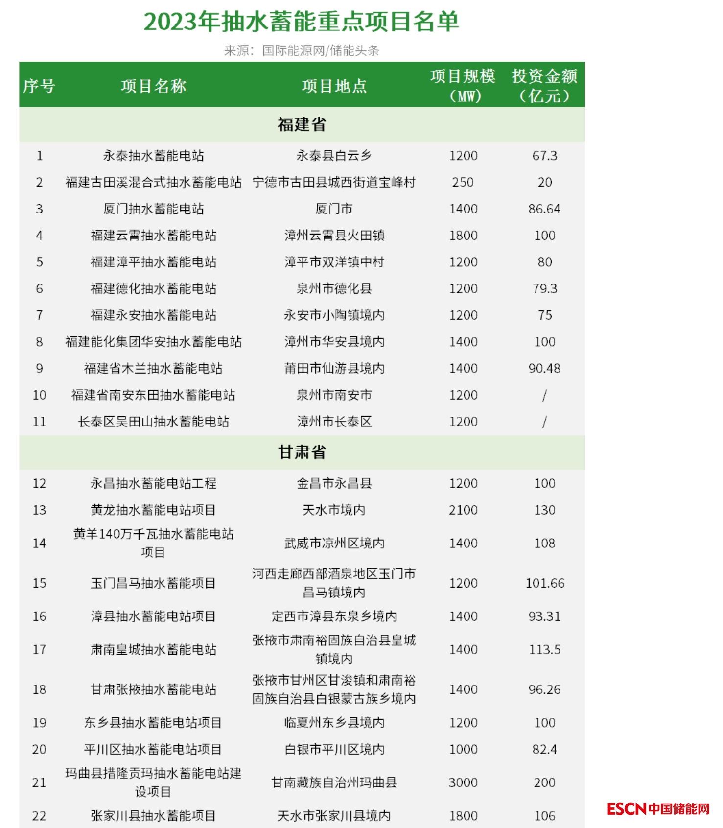 據(jù)據(jù)國際能源網(wǎng)/儲能頭條(微信號:chuneng365)統(tǒng)計(jì),截至目前,2023年甘肅、河北、河南、福建、四川、貴州、安徽、浙江、新疆等省份共公布重點(diǎn)抽水蓄能項(xiàng)目累計(jì)達(dá)80個(gè),規(guī)??傆?jì)達(dá)115.7GW,項(xiàng)目總投資6144.15億元。