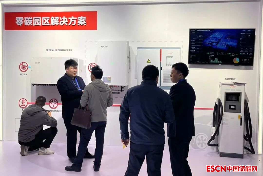 在零碳園區(qū)解決方案展示區(qū),科華數(shù)能帶來了先進的工商業(yè)光儲充一體化產(chǎn)品方案,包括SPI系列三相組串式逆變器、BCS系列壁掛式儲能變流器和立柜式儲能一體化電源、iStoragE系列光儲一體機、直流快充充電樁及EMS能量管理平臺等。相比去年,產(chǎn)品陣容更加強大,系統(tǒng)更智能、功能更全面。