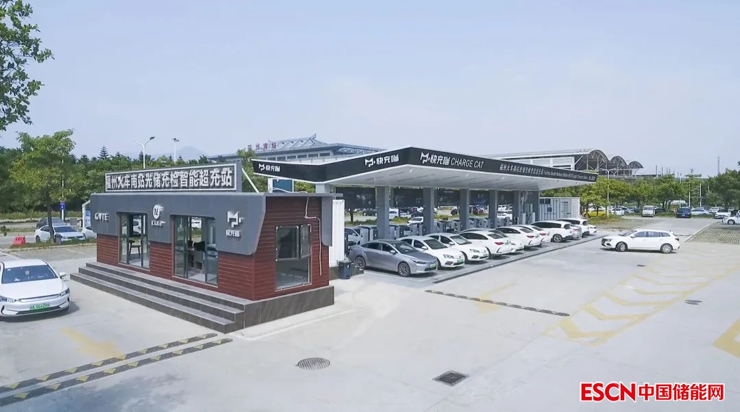 星云智慧能源參與建設的福州南站光儲充檢智能超充站停滿了前來充電的車輛