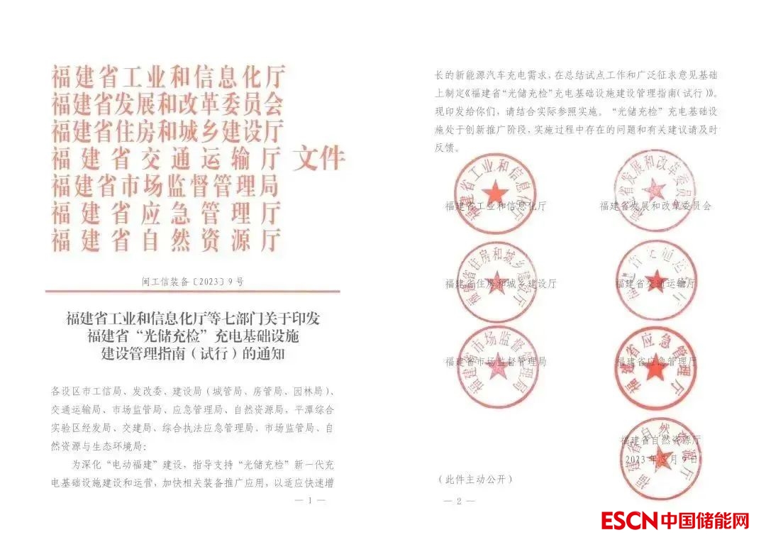 福建省七部門聯(lián)合印發(fā)《福建省“光儲充檢”充電基礎設施建設管理指南(試行)》