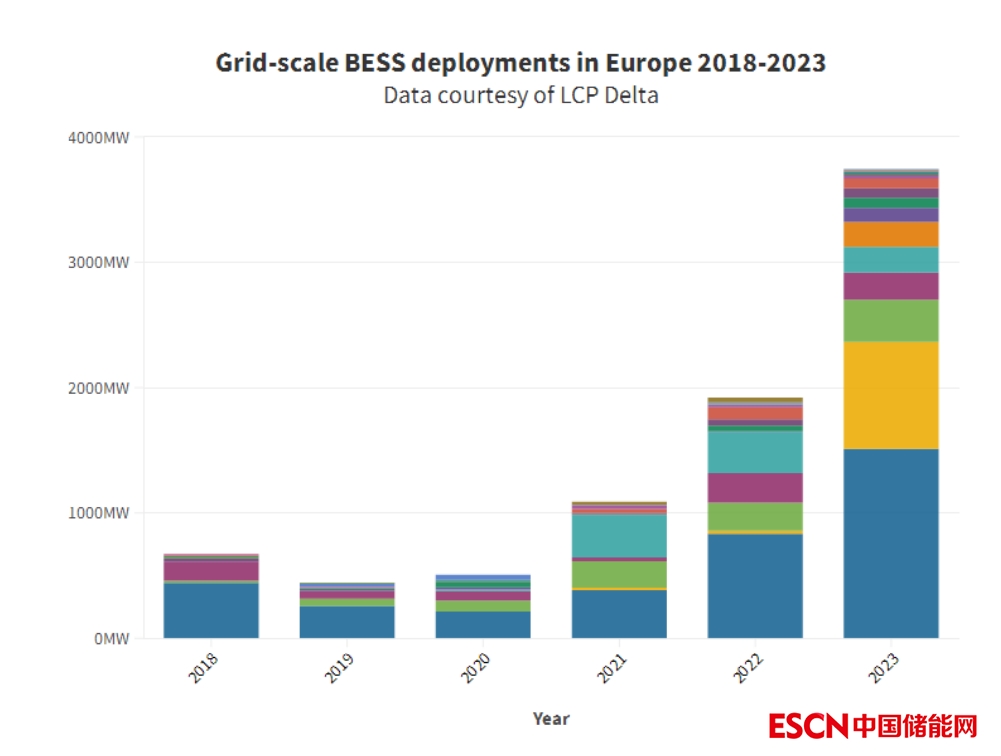 中國(guó)儲(chǔ)能網(wǎng)訊:根據(jù)研究和咨詢機(jī)構(gòu)LCP Delta公司日前發(fā)布的一份研究報(bào)告,歐洲在去年部署了約1.9GW電網(wǎng)規(guī)模電池儲(chǔ)能系統(tǒng),其中將近85%部署在英國(guó)、愛(ài)爾蘭、德國(guó)和法國(guó)。