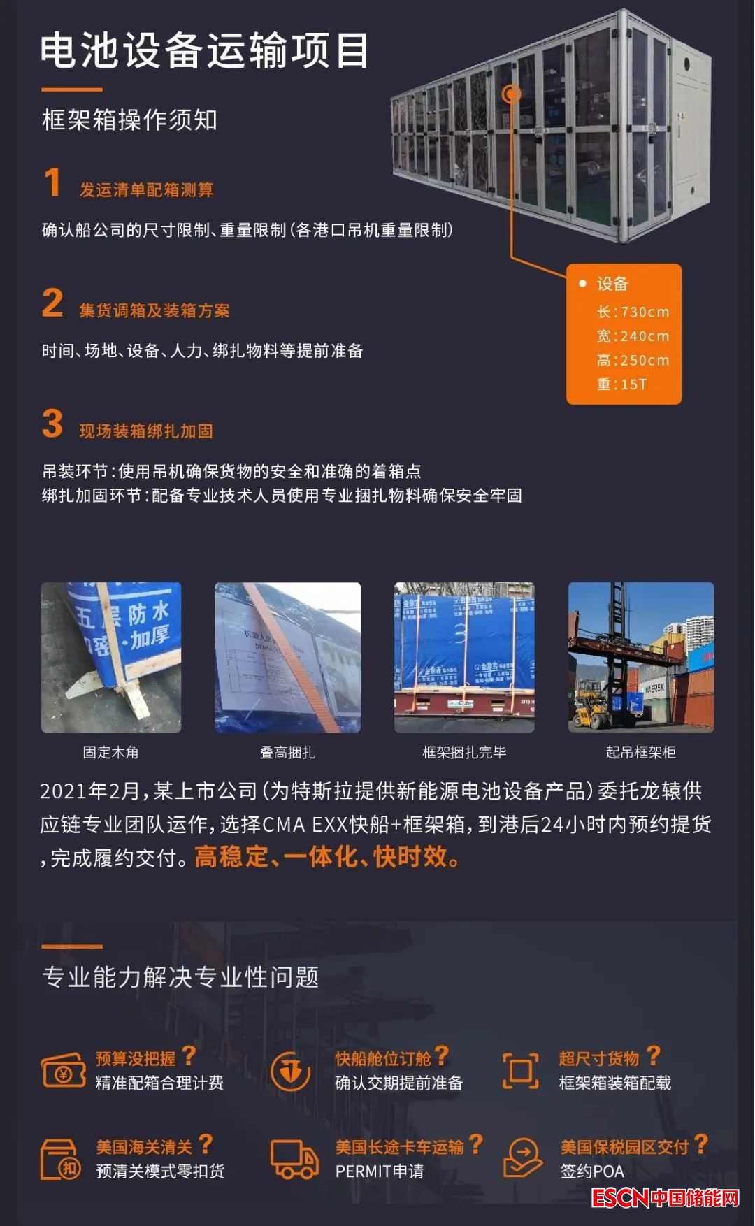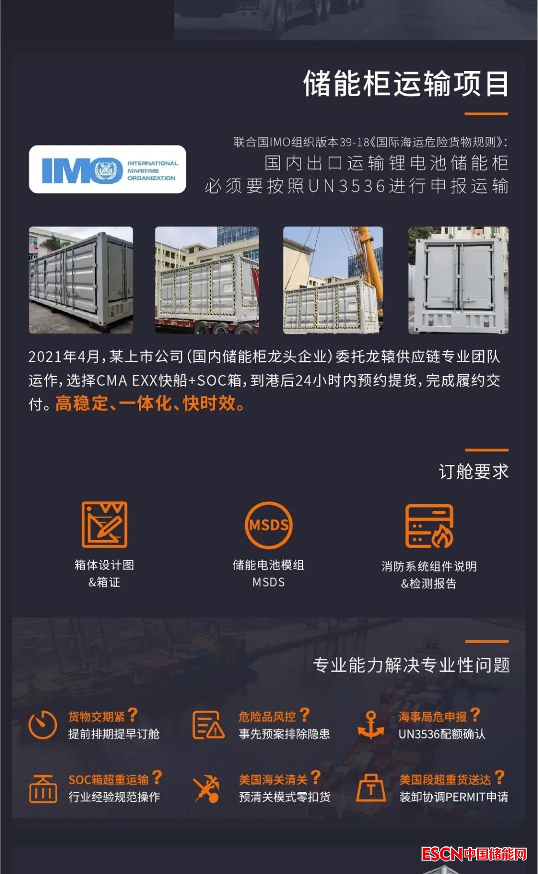 2021年是中國儲能出海爆發(fā)式增長的元年,龍轅供應鏈在2021年5月交付了美國東北電網(wǎng)的儲能項目【戳鏈接:超尺寸貨物運用框架箱運輸,龍轅再現(xiàn)——硅谷鋼鐵俠埃隆馬斯克背后的搬運工】,成為物流解決方案“集成一體化”供應商,依托美國自營海外操作團隊+自營海外倉+自營車隊的一體化服務優(yōu)勢,陪伴中國儲能集成商一起成長,從2021年的運力短缺到2022年原料上漲導致的供應鏈供貨延遲等,我們與中國制造一起共克時艱,每個項目的履約交付都讓我們累積了儲能系統(tǒng)物流項目管理的經(jīng)驗,也讓我們看到了中國儲能技術(shù)不斷迭代下的海外市場機會。