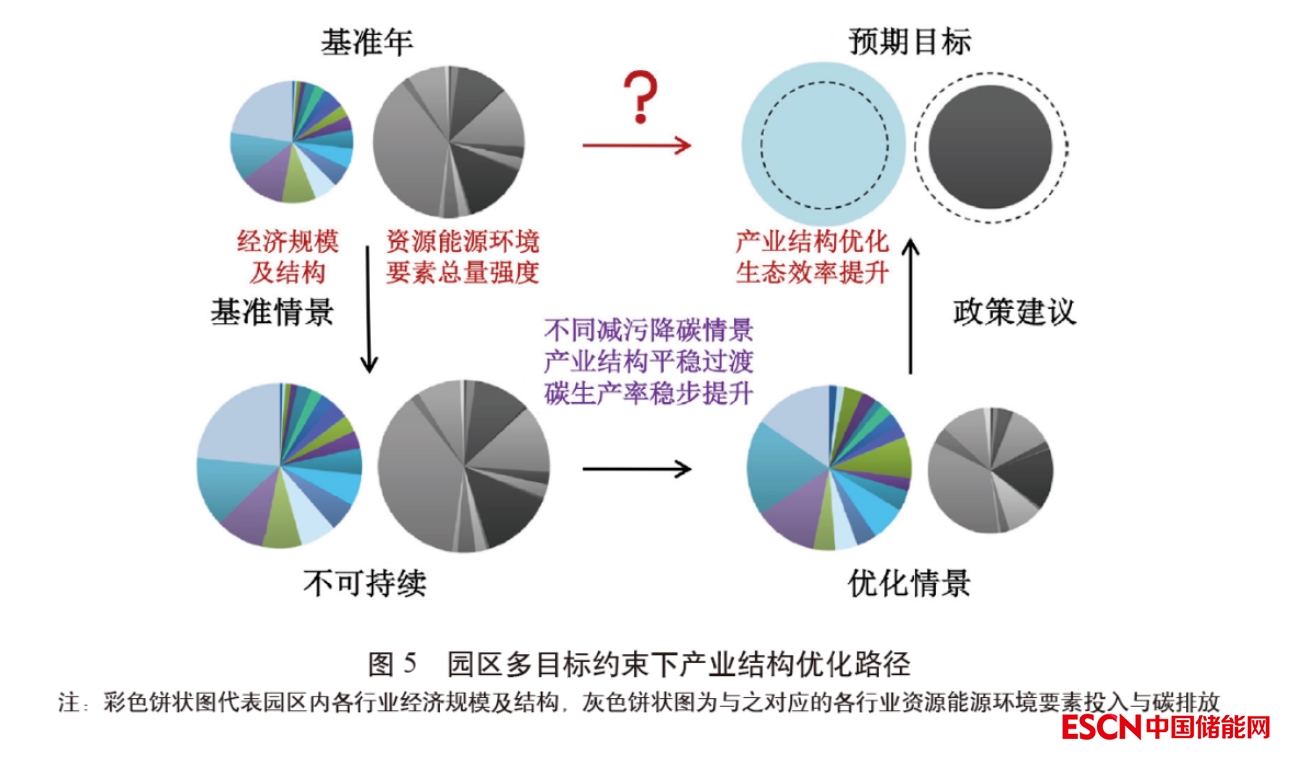 “以碳優(yōu)產(chǎn)”指將以產(chǎn)業(yè)預(yù)見的碳排放作為園區(qū)碳總量基準(zhǔn)配額,在此基礎(chǔ)上統(tǒng)籌工業(yè)總產(chǎn)值與增加值達預(yù)期增長、資源能源利用率提升等目標(biāo),反饋優(yōu)化園區(qū)產(chǎn)業(yè)結(jié)構(gòu)、提升其存量與增量行業(yè)碳生產(chǎn)率,并設(shè)置未來存量產(chǎn)業(yè)效率提升目標(biāo)與新增產(chǎn)業(yè)效率準(zhǔn)入門檻,科學(xué)制定園區(qū)碳達峰路線圖,以實現(xiàn)園區(qū)碳排放與經(jīng)濟發(fā)展脫鉤。