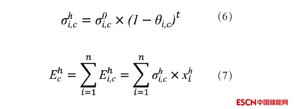 總量隨之變化,目標(biāo)年各行業(yè)碳排放強度、總量與園區(qū)碳排放總量為(見式(6)~(7)所示):