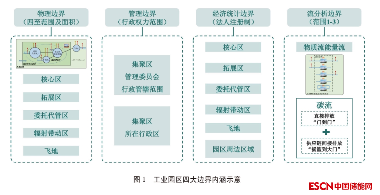 為此,需要建立園區(qū)多種邊界的界定原則,基于明確的邊界內(nèi)涵開展物質(zhì)流、能量流分析,形成園區(qū)碳流動圖,實現(xiàn)工業(yè)園區(qū)間物質(zhì)、能量、碳排總量和碳排放強度可比。此外,園區(qū)物質(zhì)能量流動既有動態(tài)流量演變,也有靜態(tài)存量鎖定,顯著增加了園區(qū)大樣本、長時序、空間化定量分析的難度。加之園區(qū)內(nèi)產(chǎn)業(yè)產(chǎn)品門類多樣、規(guī)模技術(shù)不同、排放特征各異的特點,推進精細(xì)化定量化降碳減污面臨多對象交織、多主體互動等復(fù)合難題。因而園區(qū)做好“雙碳”工作是一項極為復(fù)雜的系統(tǒng)工程,需要在闡明四大邊界的基礎(chǔ)上建立園區(qū)經(jīng)濟活動與碳排放關(guān)系的科學(xué)認(rèn)知方法。