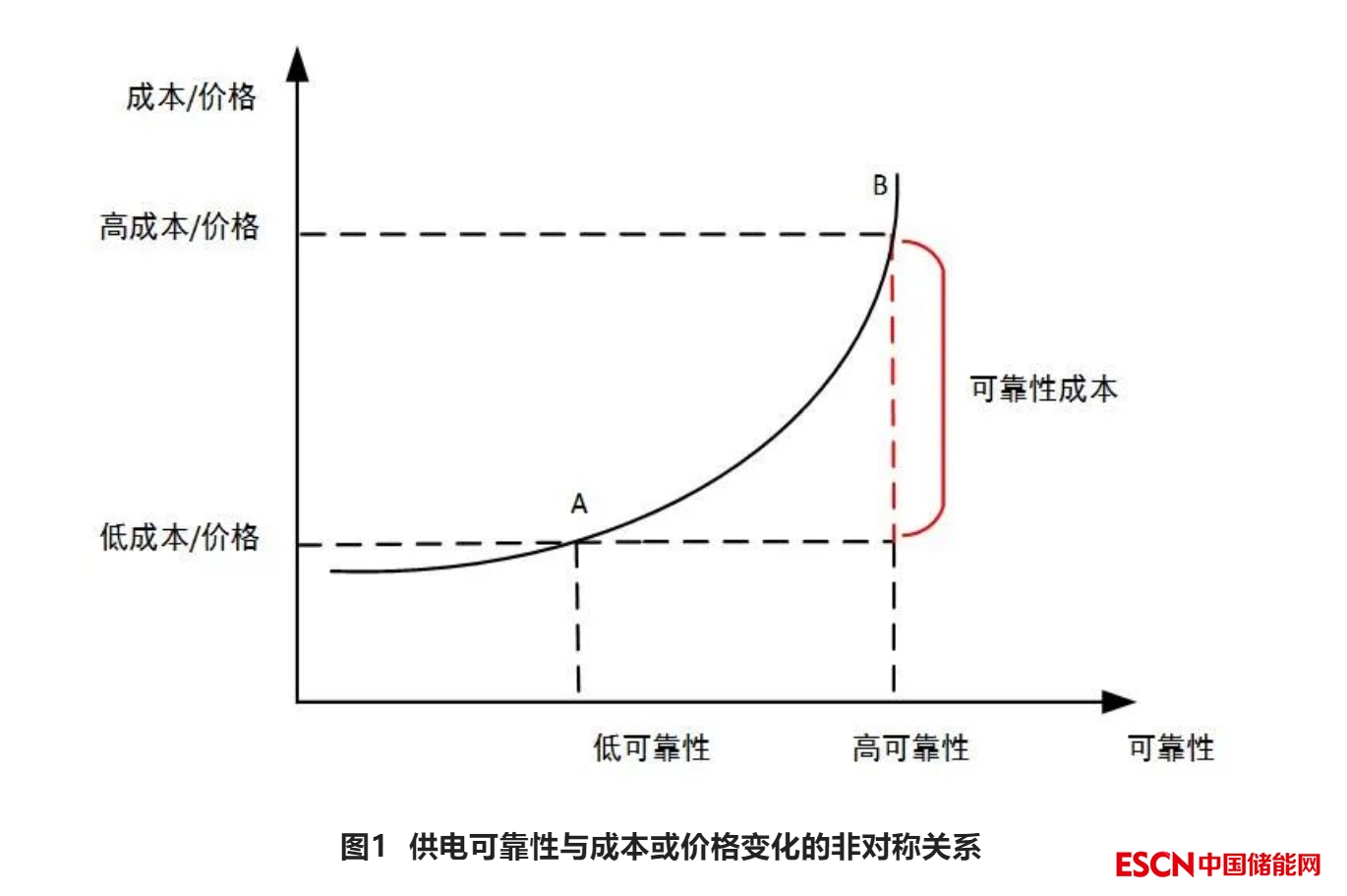 電力工業(yè)資本密集與電力負荷需求尖峰化及不確定性的特征,客觀地產(chǎn)生了滿足用電需求的經(jīng)濟性與可靠性的兩難選擇問題。高可靠性供電必然產(chǎn)生相對更大的投資和運維成本,形成很高電價;較低可靠性供電會形成相對更低的投資和運維成本,產(chǎn)生更容易接受的供電經(jīng)濟性和價格。供電可靠性與供電成本或價格的這種非對稱關系如圖1所示,這樣,電力保供本質(zhì)上是電價與可靠性水平的組合選擇問題??煽啃猿杀救绻挥蓢须娏ζ髽I(yè)或國家承擔,就只能由高負荷時段甚至電力短缺時段用電的用戶承擔。在用戶數(shù)量多、用電負荷特性信息(包括電價與可靠性需求與效用信息)組合不對稱且經(jīng)常變化的情況下,在激勵相容約束條件下吸收用戶參與或選擇是最有效的方式。比如用戶在獲得補償后減少或轉(zhuǎn)移尖峰時段的負荷需求,只要補償水平低于減少或轉(zhuǎn)移負荷對應的投資與運維等成本。不同可靠性需求的用戶的理性選擇會形成同時有利用戶和電力系統(tǒng)的“雙贏”效果。