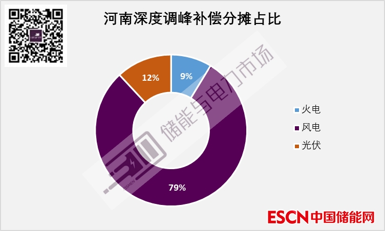 河南省電網(wǎng)調(diào)峰壓力大,從市場的補償量就可以直觀反映。2022年,河南省深度調(diào)峰補償月均達到了15375萬元,在全國都名列前茅。與此同時,新能源場站,尤其是風電,承擔的大部分調(diào)峰輔助服務(wù)分攤,分攤比例接近80%。