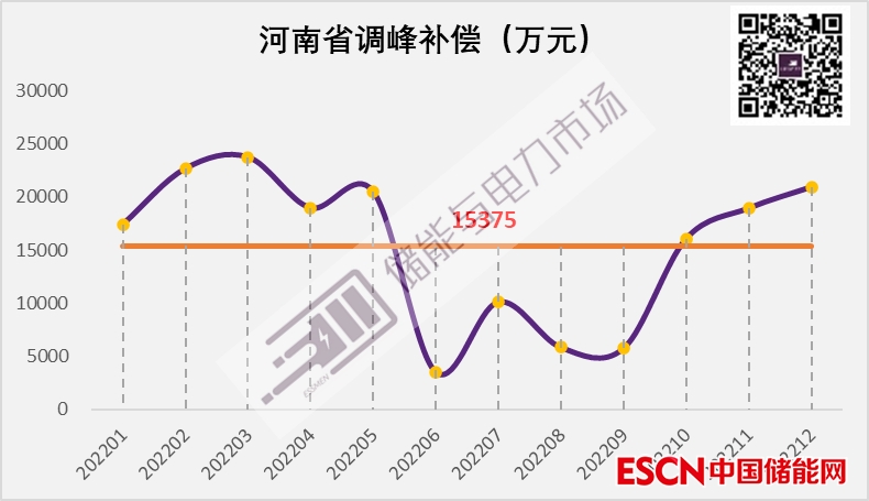 2022年1-12月間,河南省深度調(diào)峰補償月均15375萬元,尤其在冬季,月度調(diào)峰補償更是一度超過了2億元(例如2月,2.2億元),這一補償額在全國都數(shù)前列。河南省對調(diào)峰資源存在很大需求。