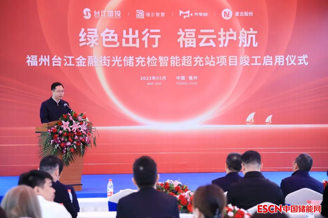 據(jù)介紹,臺江金融街光儲充檢智能超充站由福州市福云智慧新能源科技有限公司建設,該公司系福州臺江高新技術產(chǎn)業(yè)區(qū)投資開發(fā)有限公司(注:該公司為臺江區(qū)國投集團下屬企業(yè))與福建星云東能投資合伙企業(yè)(有限合伙)(注:該企業(yè)為星云股份參股公司星云智慧能源旗下企業(yè))聯(lián)手創(chuàng)建,星云股份在站點建設中提供了儲能、直流充電、電池檢測等關鍵技術支持。致公黨福建省委會專職副主委吳棉國,福建省工業(yè)信息化廳裝備工業(yè)處處長楊鵬飛,臺江區(qū)委常委、副區(qū)長鄭寅球,臺江區(qū)自然資源和規(guī)劃局局長周雯,臺江區(qū)國有資產(chǎn)投資集團有限公司董事長陳杰,臺江國投專職副書記、副總經(jīng)理葉小斌,福建時代星云科技有限公司董事長黃世霖,福建星云電子股份有限公司總裁劉作斌,福建星云東能能源科技有限責任公司總經(jīng)理林先洛,福州翔業(yè)投資有限公司總經(jīng)理劉范疇,廈門海華電力科技有限公司董事長兼總經(jīng)理蔣朝陽,長樂區(qū)產(chǎn)業(yè)投資發(fā)展集團有限公司董事長鄭曉瑱,中國石油天然氣股份有限公司天然氣銷售福建分公司黨委副書記鄧翔,以及中國銀行臺江支行、長樂產(chǎn)投集團、福州翔業(yè)投資、廈門海華電力、中國石油等合作單位的領導和嘉賓出席了竣工啟用儀式。