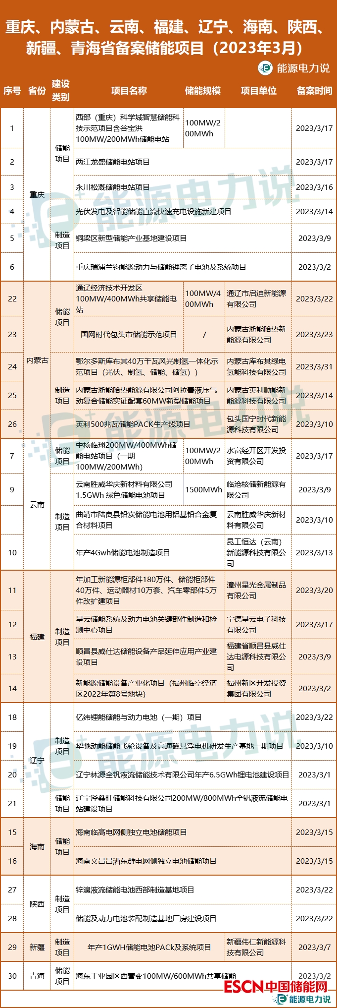 重慶/內(nèi)蒙古/云南/福建/遼寧/海南/陜西/新疆/青海省備案儲(chǔ)能項(xiàng)目