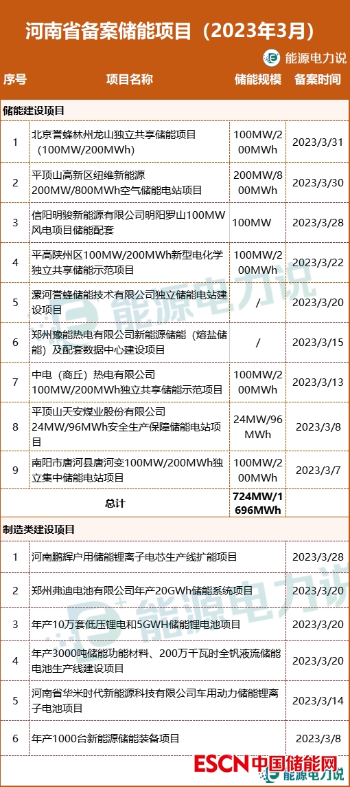 3月,河南省備案儲(chǔ)能項(xiàng)目15個(gè),其中儲(chǔ)能建設(shè)項(xiàng)目9個(gè),儲(chǔ)能產(chǎn)品制造類項(xiàng)目6個(gè)。