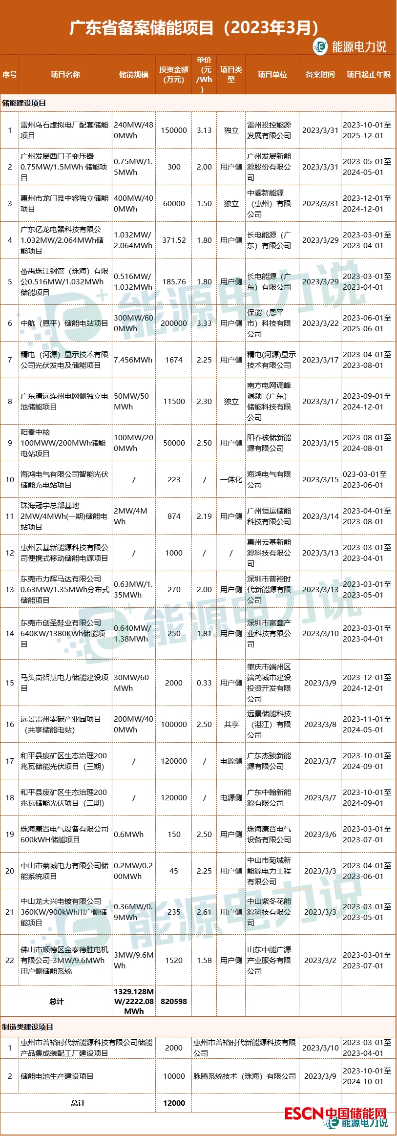 3月,廣東省備案儲(chǔ)能項(xiàng)目24個(gè),其中儲(chǔ)能建設(shè)項(xiàng)目有22個(gè),儲(chǔ)能產(chǎn)品制造類項(xiàng)目2個(gè)。
