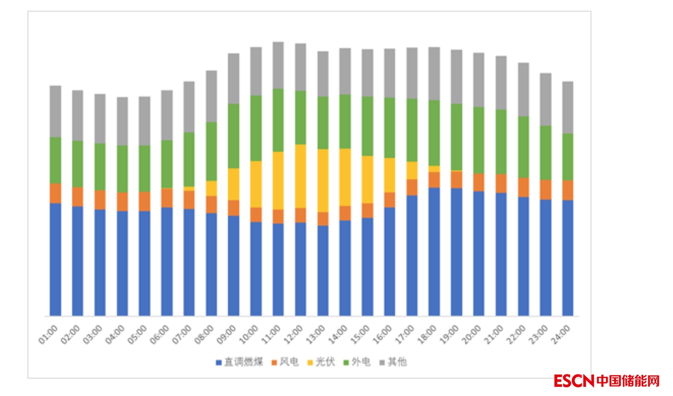從全年數(shù)據(jù)來看,光伏出力主要集中在9點(diǎn)至16點(diǎn)之間,這段時(shí)間內(nèi)光伏發(fā)電量占比達(dá)19%、火電發(fā)電量占比僅36%;而在其他時(shí)段,光伏發(fā)電量占比僅1%,火電發(fā)電量占比超過47%。與省內(nèi)火電相比,省外來電的調(diào)節(jié)幅度則明顯要小得多,在光伏出力最為集中的午間時(shí)段,外電的電量占比依然超過了20%;而在夜間高峰時(shí)段,外電電量占比也只有25%。