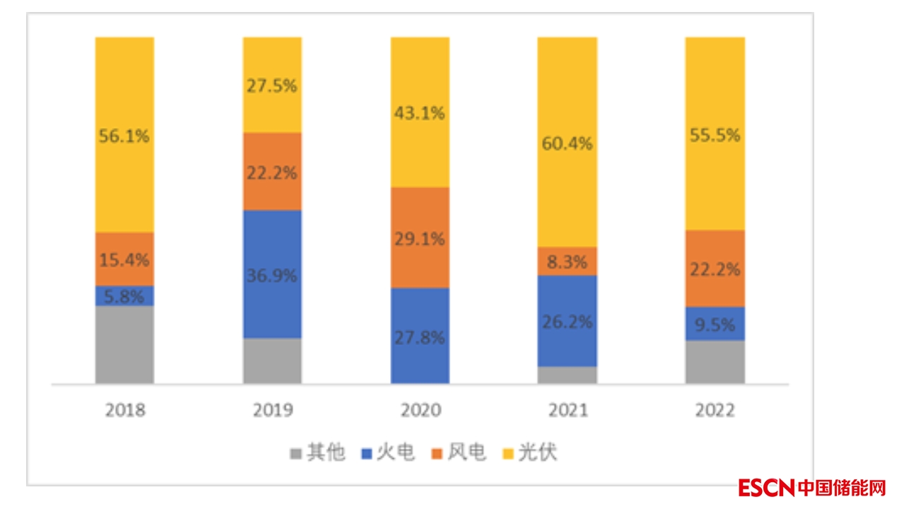 圖1 該省近5年新增裝機(jī)成分占比