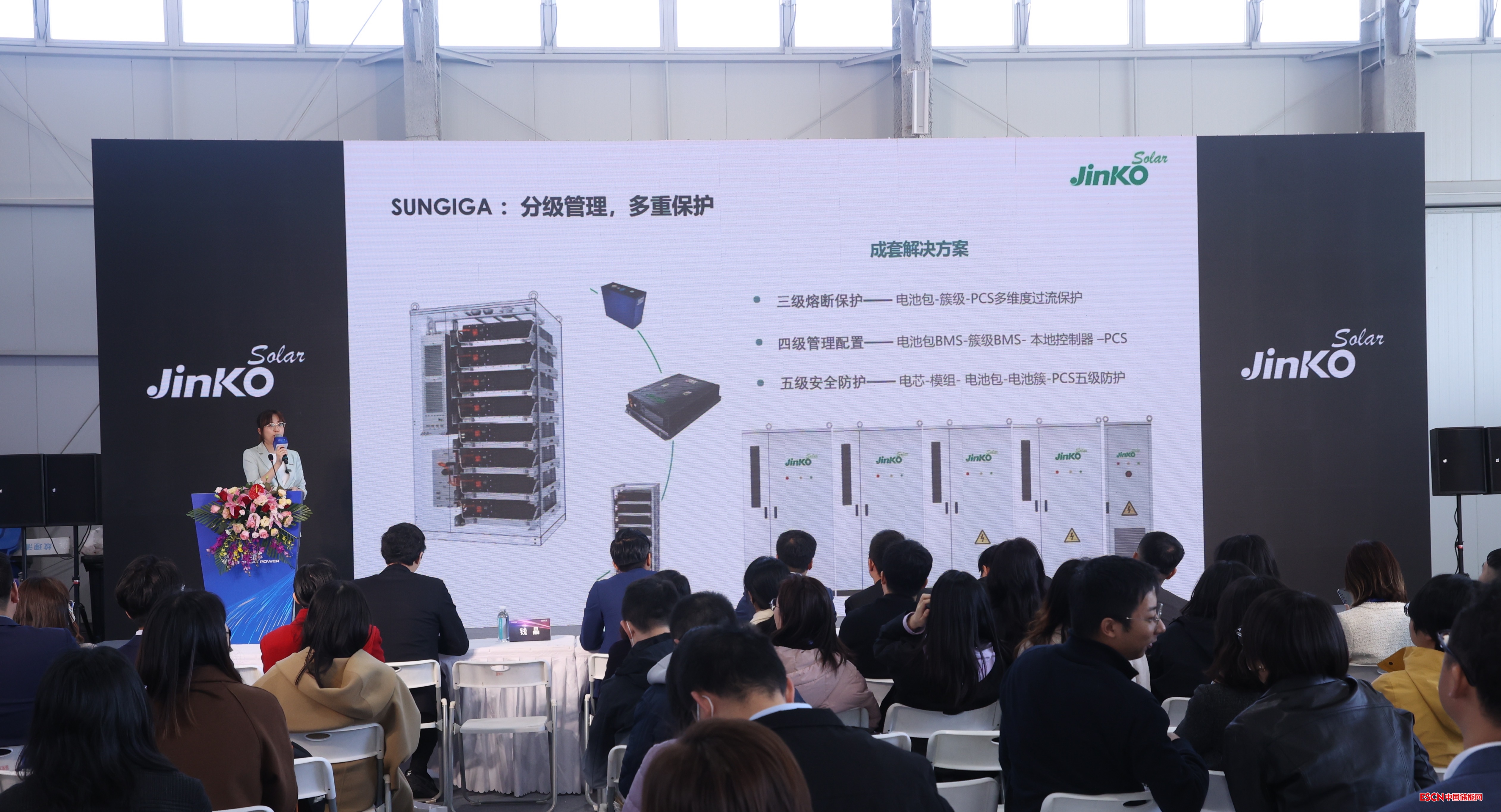 本次發(fā)布會上,晶科能源隆重推出了全新一代SunGiga液冷工商業(yè)儲能解決方案,即公司專為工商業(yè)應用場景所打造的智慧化儲能解決方案。系統(tǒng)基于一體化設計理念,選用了高性能磷酸鐵鋰電芯,設計了高效率液冷系統(tǒng),開發(fā)了高防護系統(tǒng)設計以及應用了高智能監(jiān)控平臺,兼具超高安全性、超長壽命、高充/放電能量保持率和效率、高可靠性、快速安裝、智能運維、強擴容性及高兼容性等多項優(yōu)勢特性。
