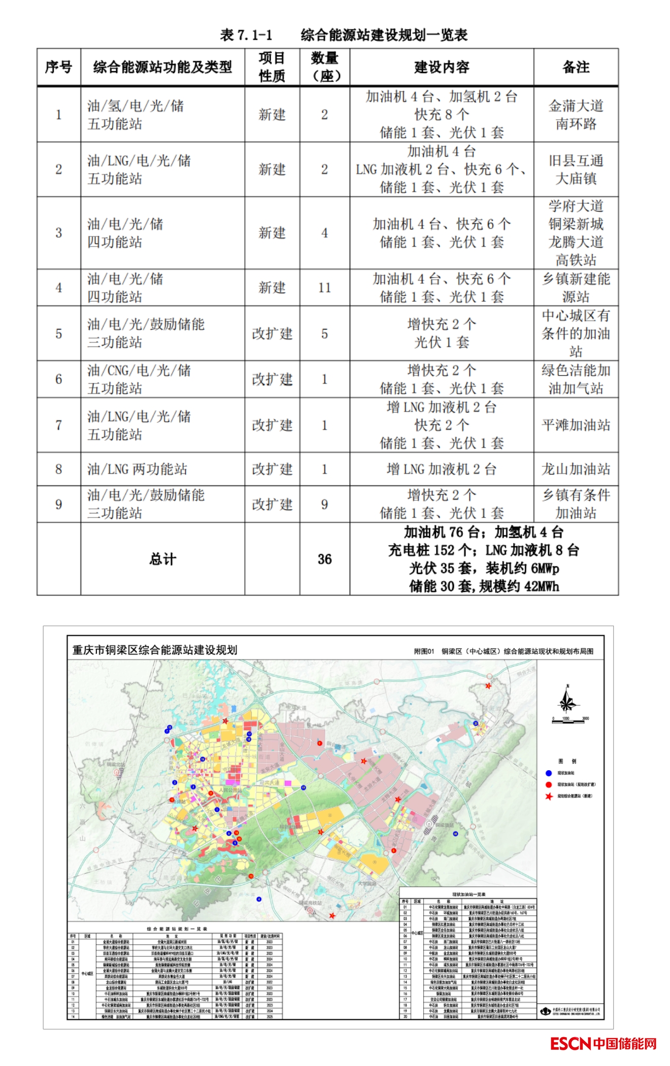 根據(jù)隨通知發(fā)布的《重慶市銅梁區(qū)綜合能源站規(guī)劃 》(征求意見(jiàn)稿),銅梁區(qū)將共布局綜合能源站 36 座,包括新建能源站 19 座,改擴(kuò)建站 17 座。36座綜合能源站共包含30套儲(chǔ)能設(shè)備需求,儲(chǔ)能規(guī)模約42MWh。