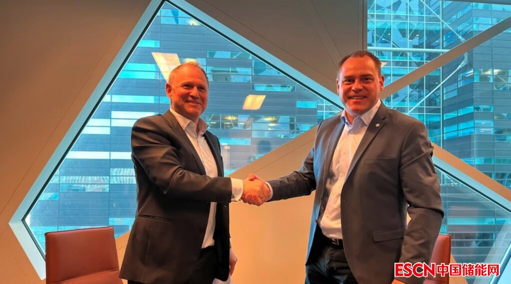 Morrow Batteries公司首席執(zhí)行官Lars Christian Bacher和Eldrift公司首席執(zhí)行官Jon Anders Hammersmark簽署協(xié)議
