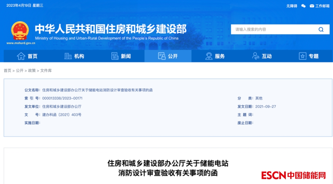 中國儲能網(wǎng)訊:4月18日,住建部公布回復(fù)廣東住建廳《關(guān)于明確儲能電站消防設(shè)計(jì)審查驗(yàn)收有關(guān)事項(xiàng)的請示》的函。