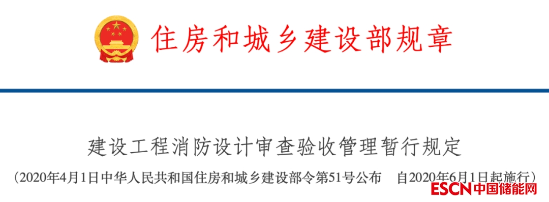 建設(shè)工程應(yīng)嚴(yán)格按照工程建設(shè)審批制度要求辦理相關(guān)手續(xù)。電化學(xué)儲能電站符合《建設(shè)工程消防設(shè)計(jì)審查驗(yàn)收管理暫行規(guī)定》(住房和城鄉(xiāng)建設(shè)部令第51號,以下簡稱《暫行規(guī)定》)第十四條規(guī)定的特殊建設(shè)工程情形的,其申請消防設(shè)計(jì)審查驗(yàn)收且要件齊全,應(yīng)依法受理。其中,電化學(xué)儲能電站符合《暫行規(guī)定》第十七條規(guī)定的兩款情形之一的,省級消防設(shè)計(jì)審查主管部門應(yīng)組織召開專家評審會,對建設(shè)單位提交的特殊消防設(shè)計(jì)技術(shù)資料進(jìn)行評審。