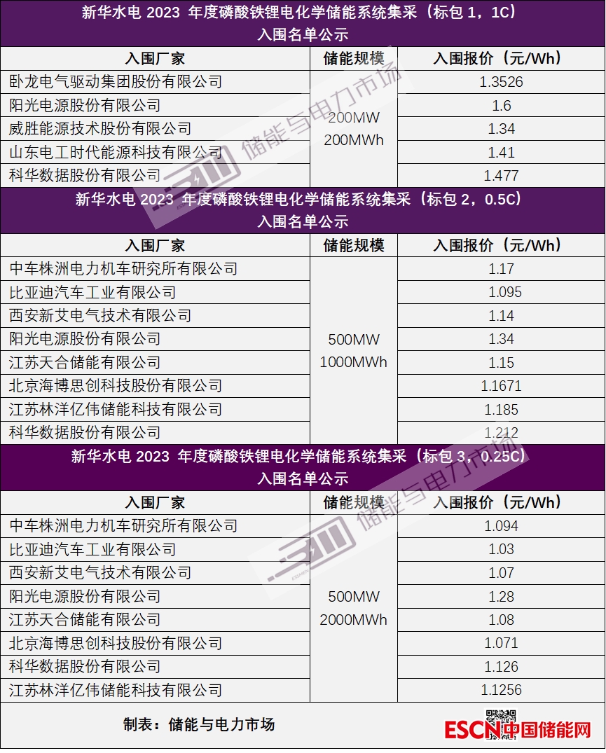 中國儲(chǔ)能網(wǎng)訊:4月21日,總規(guī)模為1.2GW/3.2GWh的新華水電2023年度磷酸鐵鋰電化學(xué)儲(chǔ)能系統(tǒng)集采發(fā)布入圍名單。