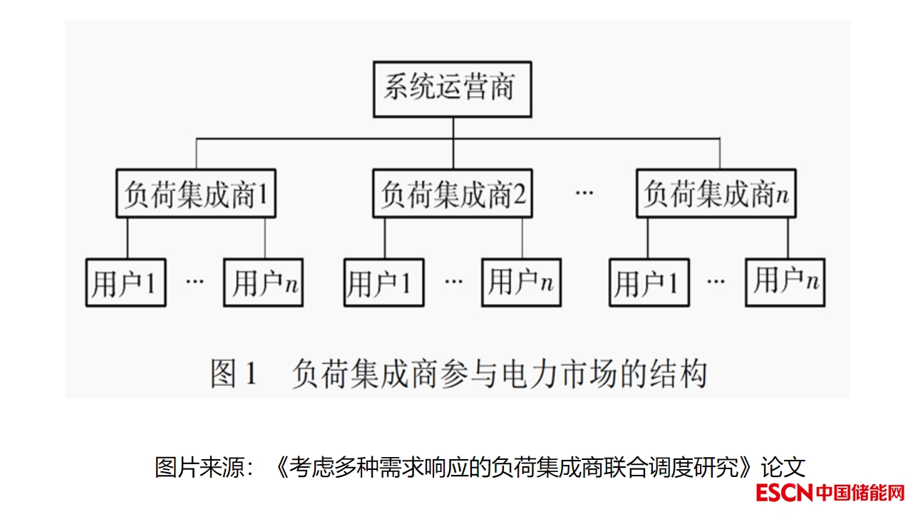 據(jù)相關(guān)學(xué)術(shù)資料,隨著智能計(jì)量技術(shù)的發(fā)展,電網(wǎng)與終端用戶間可雙向通信。由于終端用戶數(shù)量龐大,所有用戶都直接與電網(wǎng)進(jìn)行通信將加大電網(wǎng)調(diào)配的負(fù)擔(dān),因此負(fù)荷集成商作為系統(tǒng)與用戶的中介,可降低用戶參與需求響應(yīng)的準(zhǔn)入標(biāo)準(zhǔn),增加參與數(shù)量。