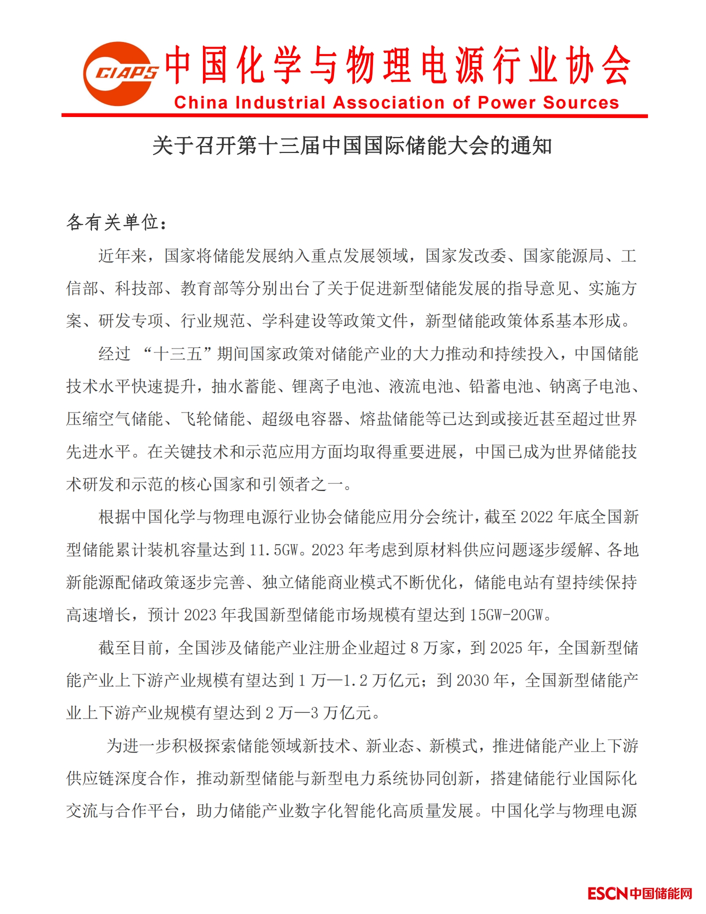 為進(jìn)一步積極探索儲能領(lǐng)域新技術(shù)、新業(yè)態(tài)、新模式,推進(jìn)儲能產(chǎn)業(yè)上下游供應(yīng)鏈深度合作,推動新型儲能與新型電力系統(tǒng)協(xié)同創(chuàng)新,搭建儲能行業(yè)國際化交流與合作平臺,助力儲能產(chǎn)業(yè)數(shù)字化智能化高質(zhì)量發(fā)展。中國化學(xué)與物理電源行業(yè)協(xié)會決定聯(lián)合230余家單位將于2023年5月24-26日在杭州洲際酒店共同召開“第十三屆中國國際儲能大會”。