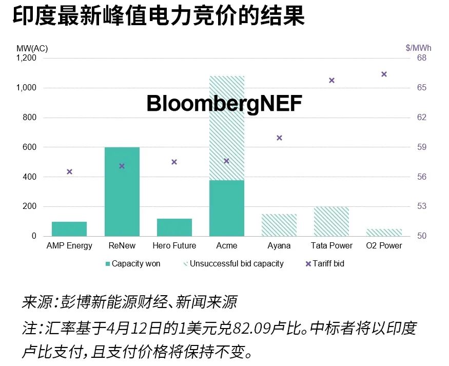 Solar Energy Corp. of India在4月12日對(duì)1.2GW的風(fēng)光儲(chǔ)一體化項(xiàng)目進(jìn)行競(jìng)價(jià)。它是負(fù)責(zé)進(jìn)行印度清潔電力招標(biāo)的聯(lián)邦機(jī)構(gòu)。四家獨(dú)立發(fā)電商(IPP)已被宣布中標(biāo)——AMP Energy(100MW)、ReNew(600MW)、Hero Future Energies(120MW)和Acme Cleantech Solutions(380MW)。這是印度最新的復(fù)雜電力競(jìng)價(jià),需要綜合多種技術(shù)才能滿足特定的可再生能源供電條件。