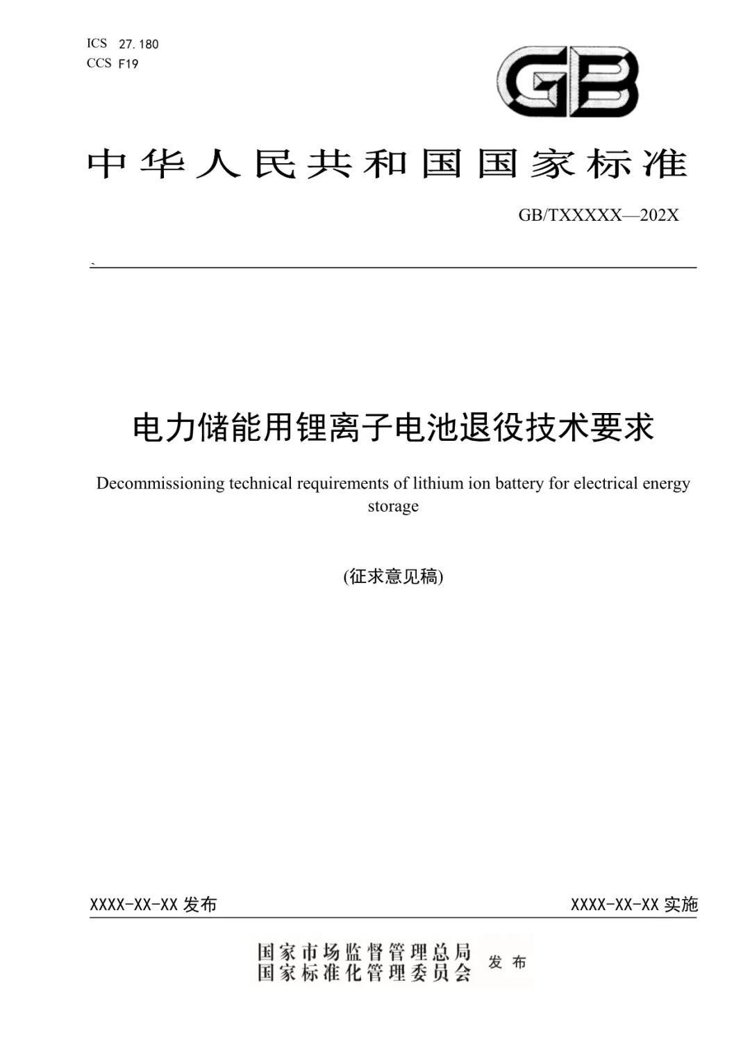 中國(guó)儲(chǔ)能網(wǎng)訊:國(guó)家標(biāo)準(zhǔn)化信息平臺(tái)發(fā)布關(guān)于征求國(guó)家標(biāo)準(zhǔn)《 電力儲(chǔ)能用鋰離子電池退役技術(shù)要求》意見(jiàn)的函。