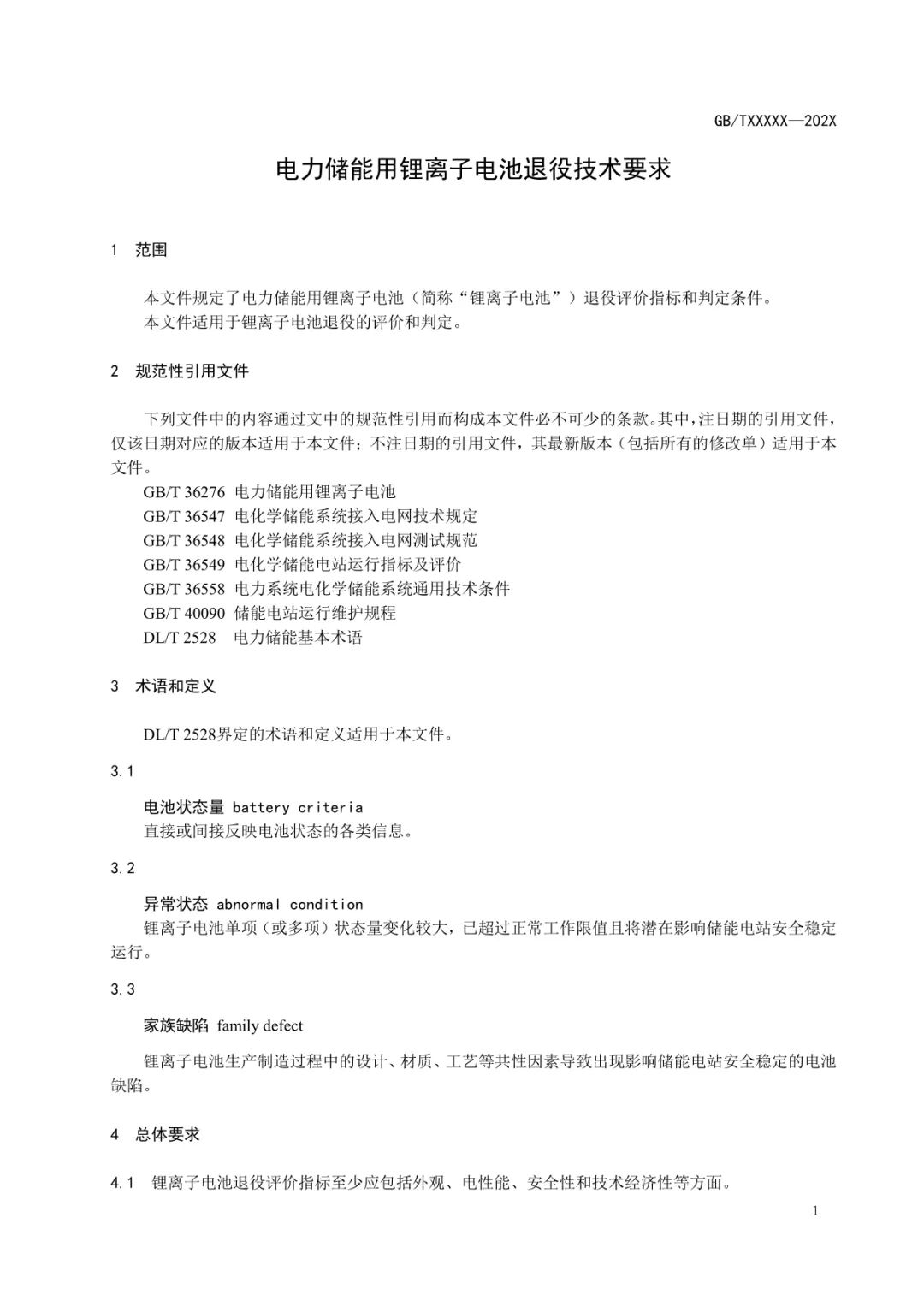 《 電力儲(chǔ)能用鋰離子電池退役技術(shù)要求》及編制說(shuō)明原文如下: