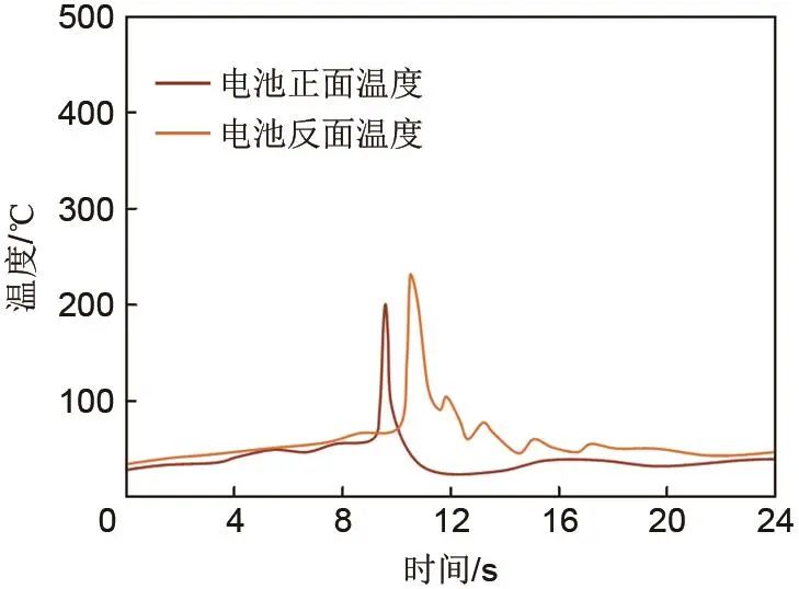 圖9 熱失控電池表面溫度曲線