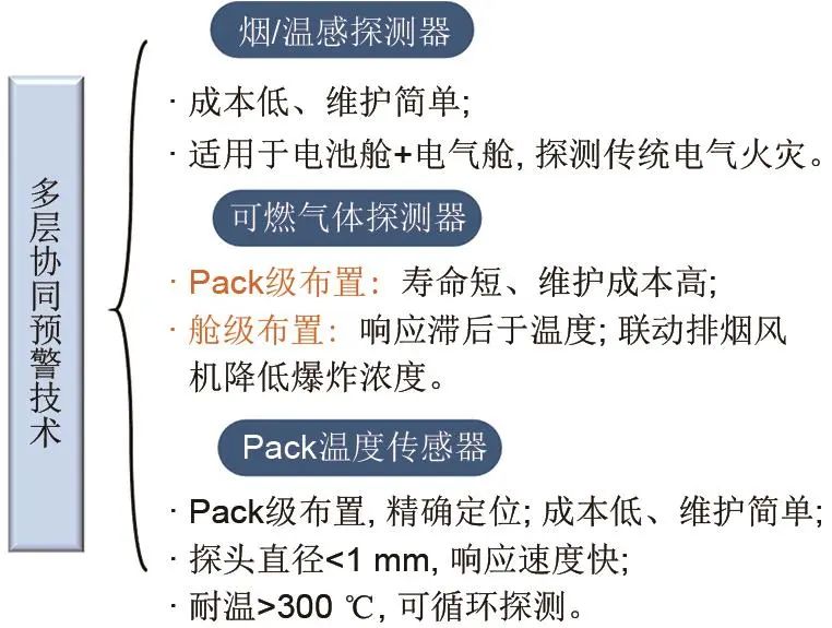 儲(chǔ)能系統(tǒng)火災(zāi)除了鋰離子電池因熱失控引發(fā)的電池火災(zāi)外,還存在電氣設(shè)備短路、老化所引起的電氣火災(zāi),電氣火災(zāi)分為電氣柜內(nèi)部火災(zāi)和艙級電氣火災(zāi)。因此,針對儲(chǔ)能系統(tǒng)不同火災(zāi)類型,可選擇不同的預(yù)警探測器,以實(shí)現(xiàn)對儲(chǔ)能系統(tǒng)安全預(yù)警精準(zhǔn)可靠和維護(hù)便捷等功能。