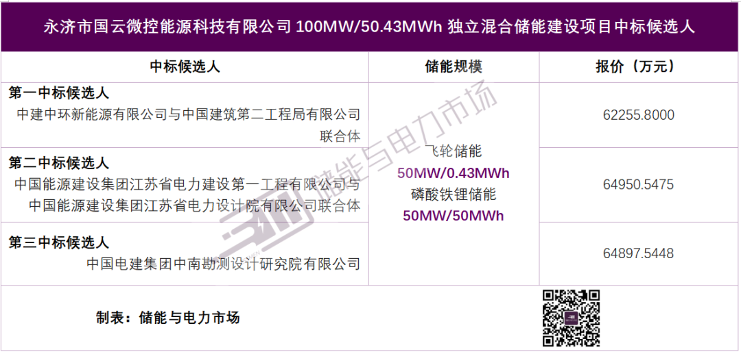 中國儲能網訊:近日,山西永濟市國云微控能源科技有限公司100MW/50.43MWh獨立混合儲能建設項目中標候選人公示。該項目采用50MW/0.43MWh飛輪儲能系統(tǒng)+50MW/50MWh的磷酸鐵鋰儲能系統(tǒng)。