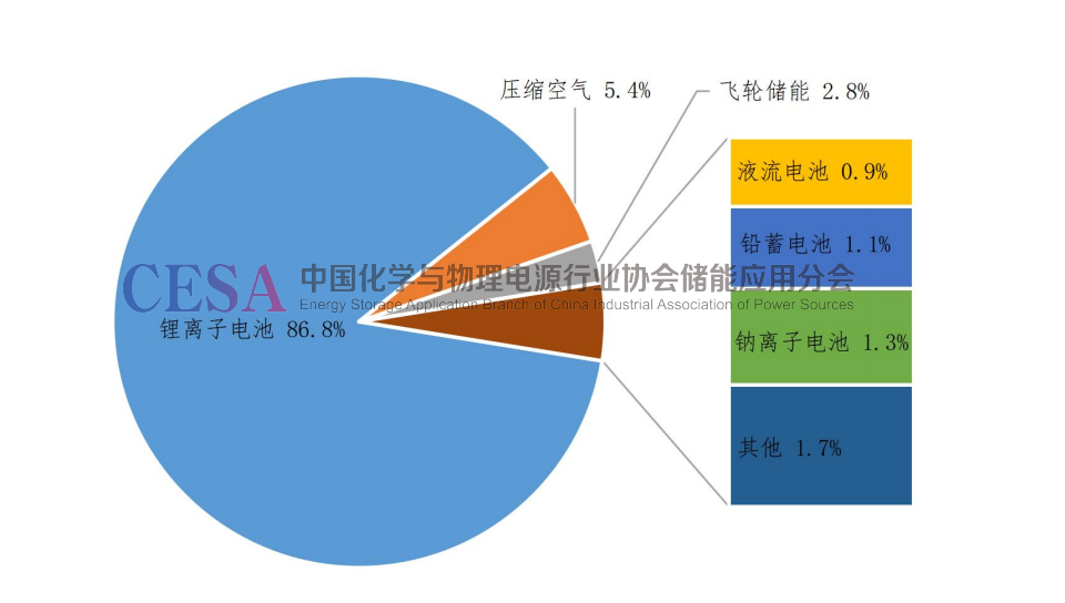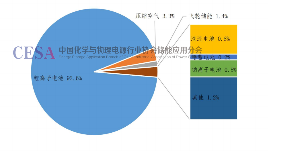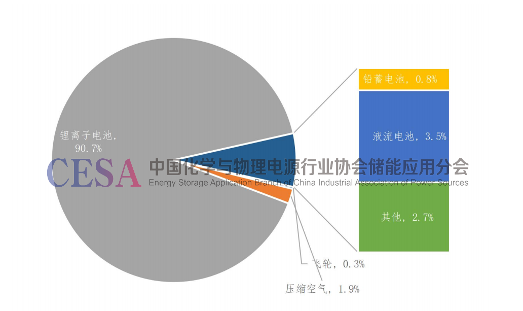 5.2022年中國新型儲能新增裝機(jī)中鋰離子電池占比為90.7%