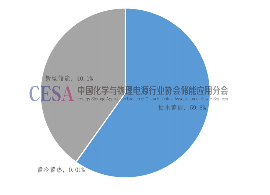 2022年中國儲能新增裝機(jī)量約14.7GW,其中:新型儲能新增裝機(jī)量約5.9GW,占比為40.1%;抽水蓄能新增裝機(jī)量約8.8GW,占比59.8%;蓄熱蓄冷新增裝機(jī)量約69.5MW。